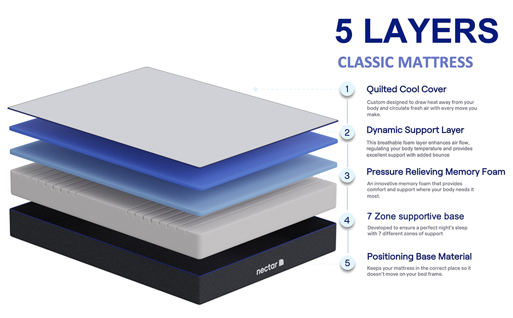 The foams used in Nectar mattresses have gone through rigorous testing to achieve CertiPUR certification, ensuring that the foams meet strict environmental and health and safety standards.